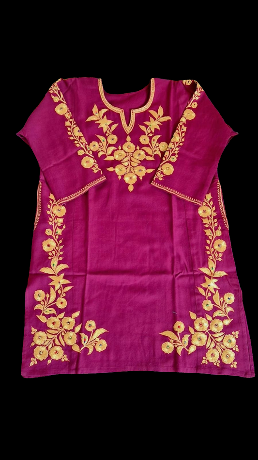 Pure Wool Long Coat with Kashmiri Ari Embroidery