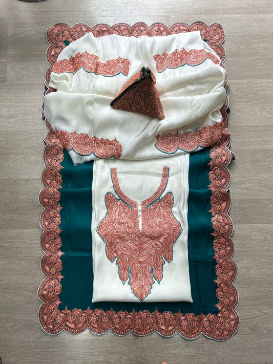 Beautiful Aari Work Pheran in Cashmilon White Colour