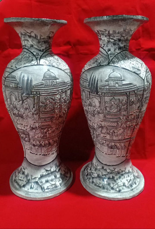 Mughal Courtroom 20 Inch Papier Mâché Vase Pair
