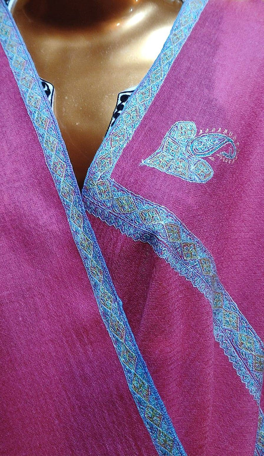 Pashmina Kashmiri Shawl Pink, Thick Border Embroidery