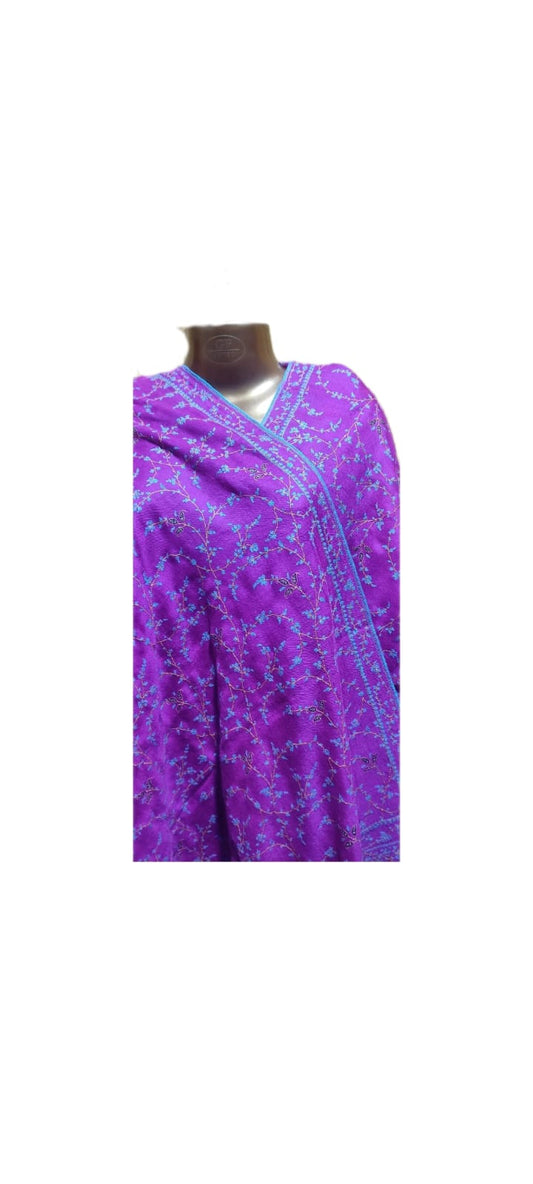 Semi Pashmina Kashmiri Shawl Dark Blue Full Embroidery