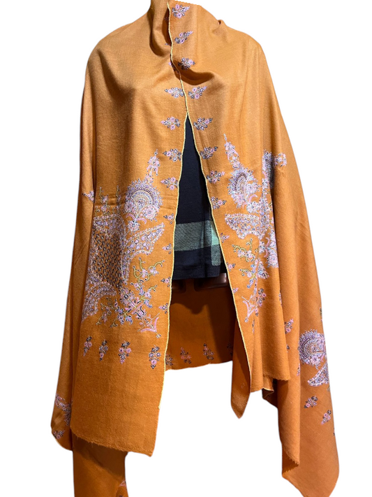 Pure Pashmina with Bootidaar Embroidery in orange colour