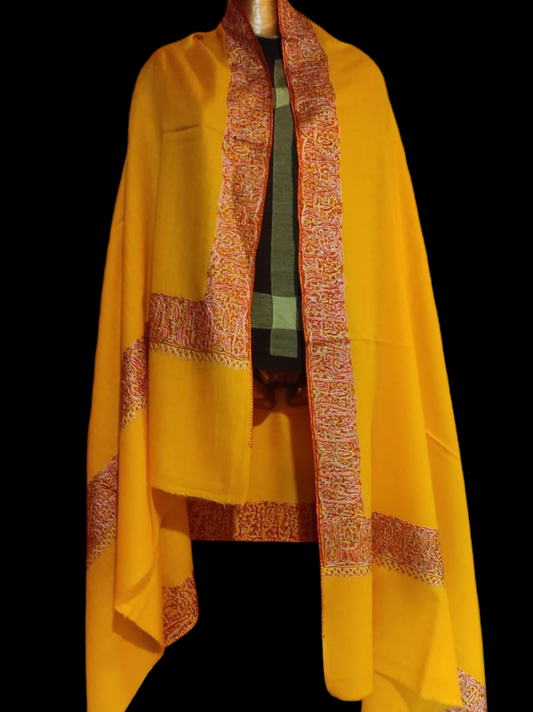 Semi Pashmina Kashmiri Shawl Yellow, Border Embroidery
