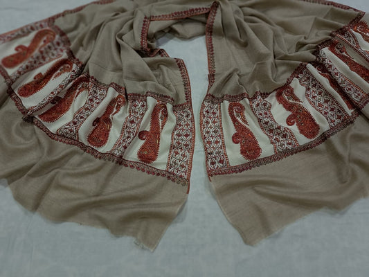 Pashmina Kashmiri Shawl in Basic Pashmina Colour, Thick Border Embroidery