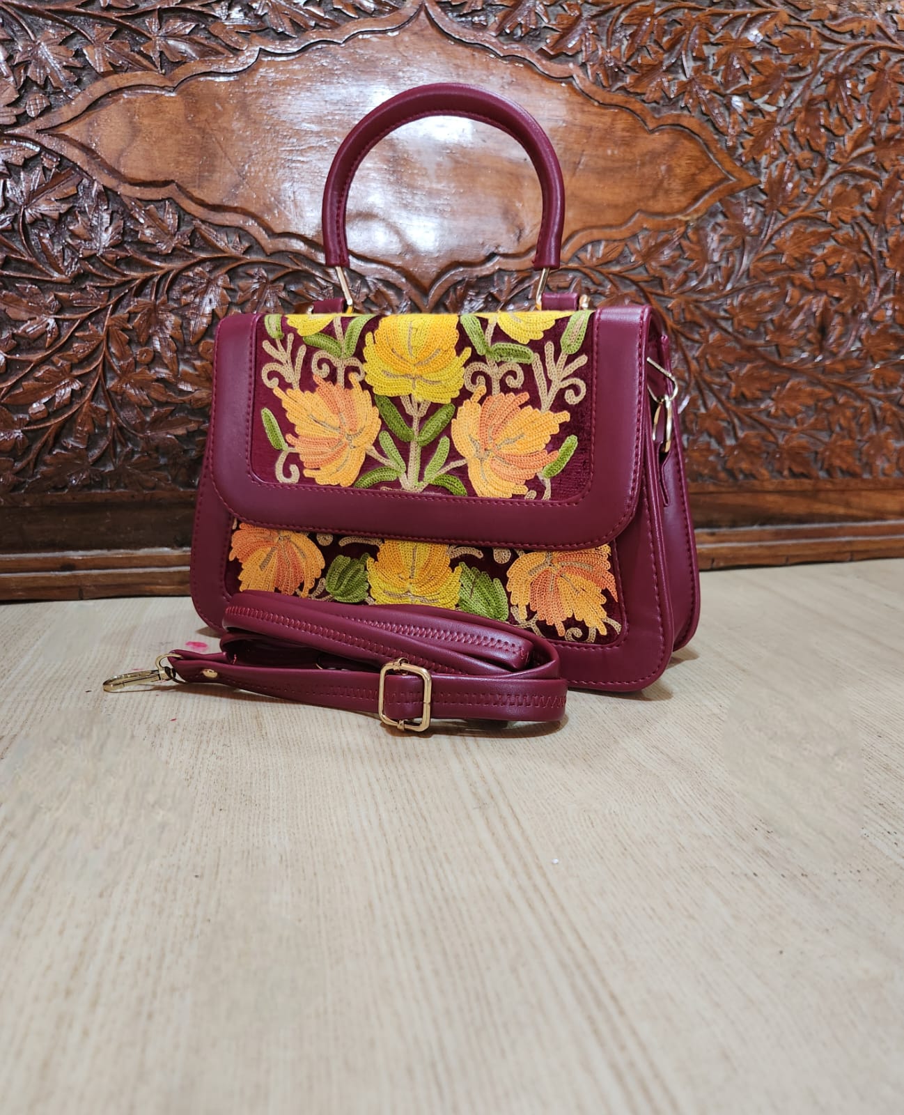 Experience the artistry and beauty of Kashmiri craftsmanship with this exceptional handbag. Order now and embrace the allure of traditional embroidery combined with contemporary design.