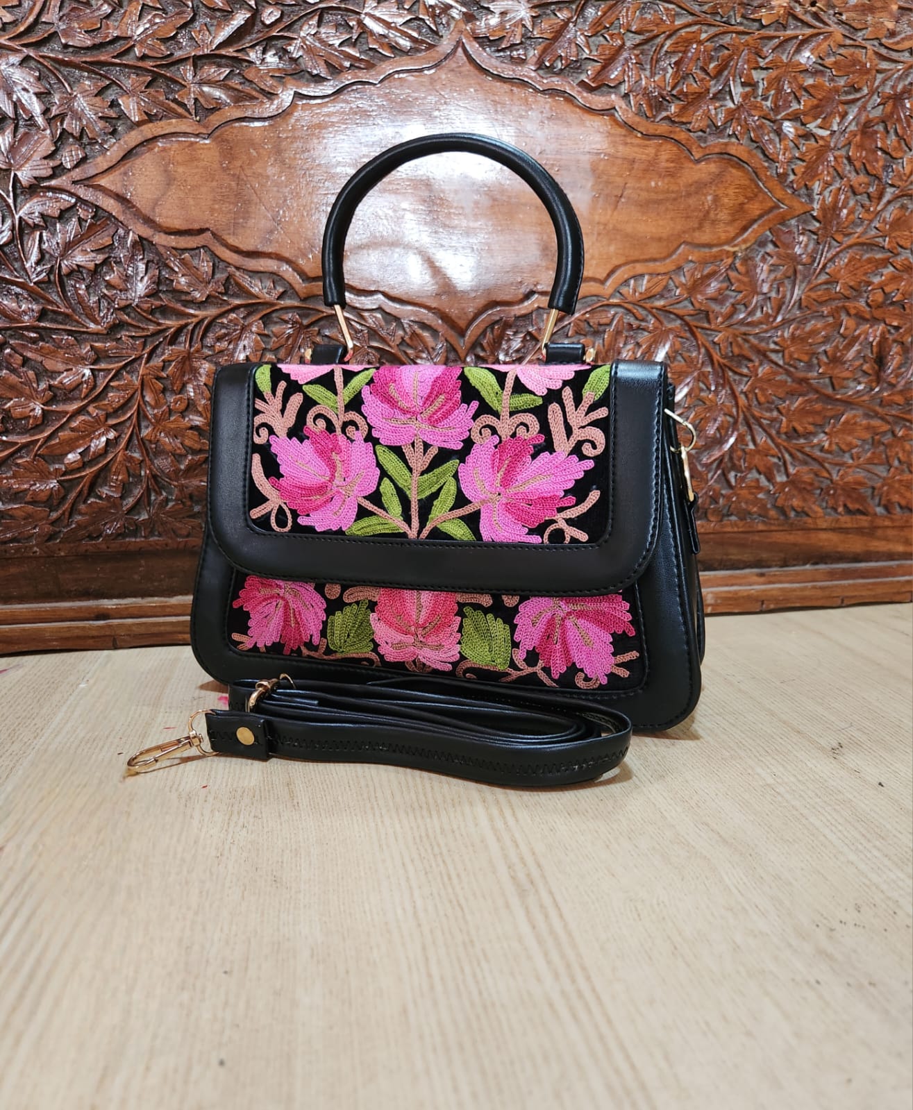 Elevate your style with our stunning Kashmiri Aari Embroidery Suede Designer Handmade Handbag. This exquisite piece showcases the finest craftsmanship of Kashmiri artisans, combining traditional techniques with contemporary design elements. Handcrafted with meticulous attention to detail, this handbag is a true work of art.