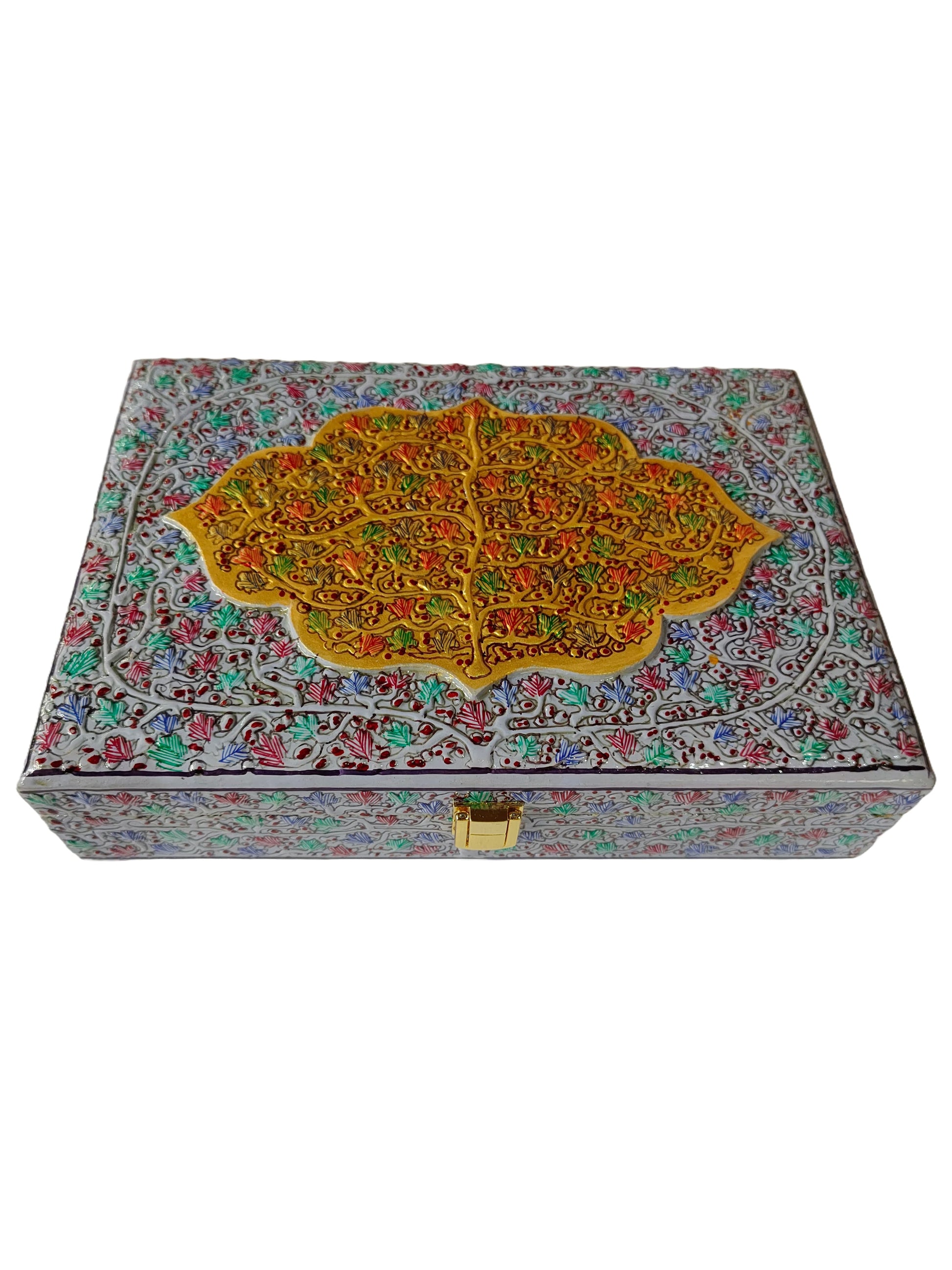 Rooted in Kashmir's royal heritage, papier-mâché boxes like this were once crafted to present precious shawls to nobility. Today, it honors that legacy while offering modern functionality for shawl collectors, fashion enthusiasts, and lovers of cultural artistry.