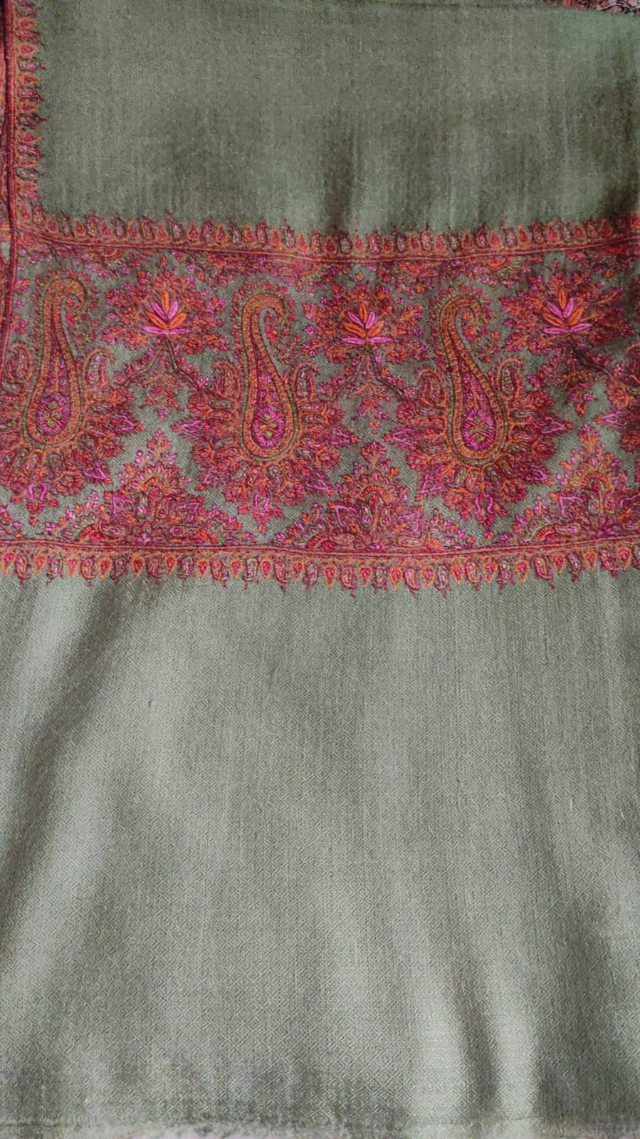 Pashmina Kashmiri Shawl in Basic Pashmina Colour, Thick Border Embroidery
