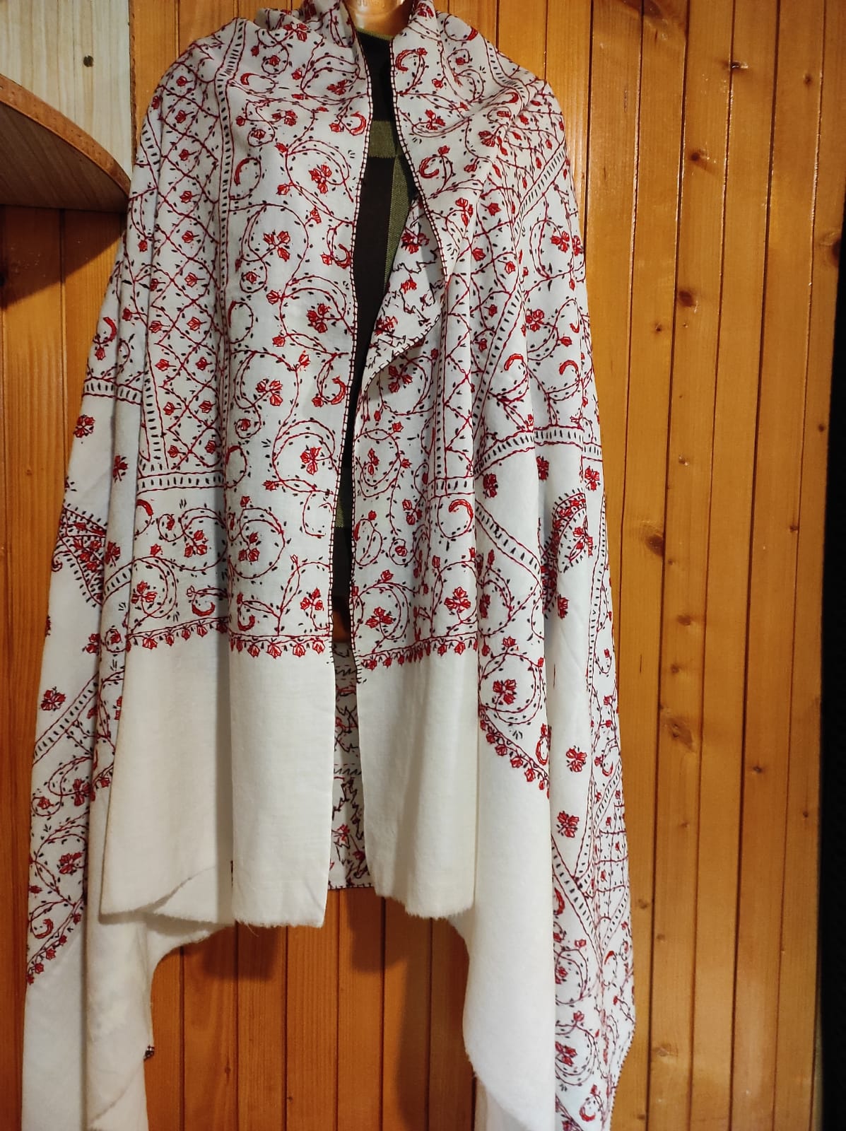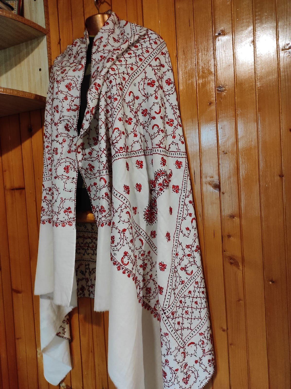 Pashmina Kashmiri Shawl – White with Full Embroidery