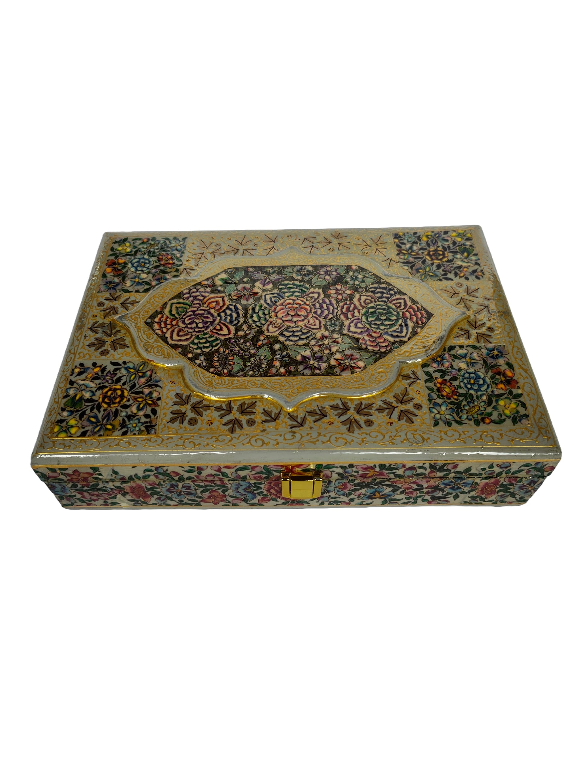 Rooted in Kashmir's royal heritage, papier-mâché boxes like this were once crafted to present precious shawls to nobility. Today, it honors that legacy while offering modern functionality for shawl collectors, fashion enthusiasts, and lovers of cultural artistry.