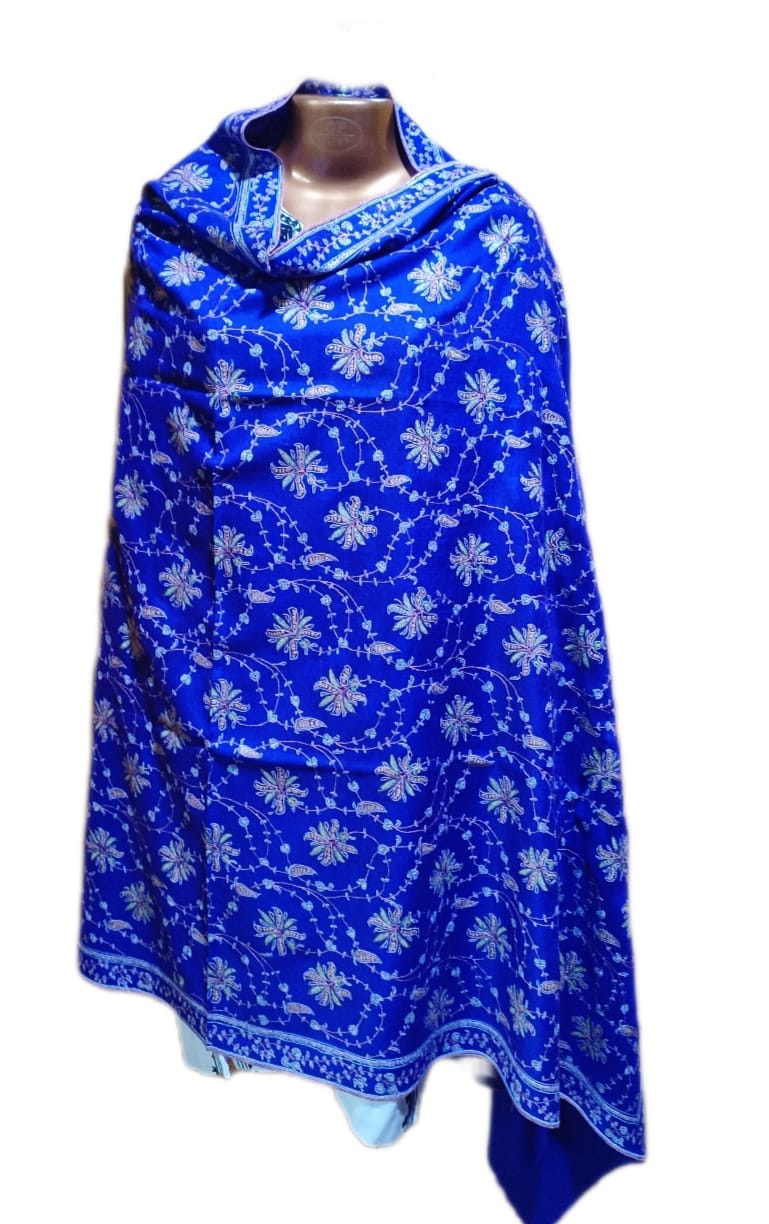 Semi Pashmina Kashmiri Shawl – Dark Blue, Full Embroidery